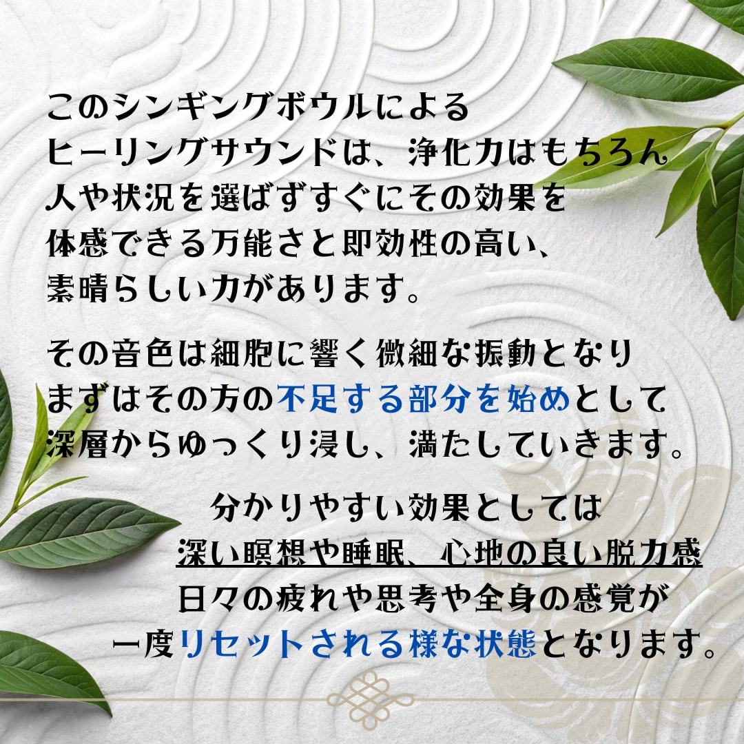 いわゆる『調律』のようなものですが、その効果は古代より治療としても使用されてきた【シンギングボウル】の放つ音や響きの力が大きいからこそ、善悪両者とも絶大となります。